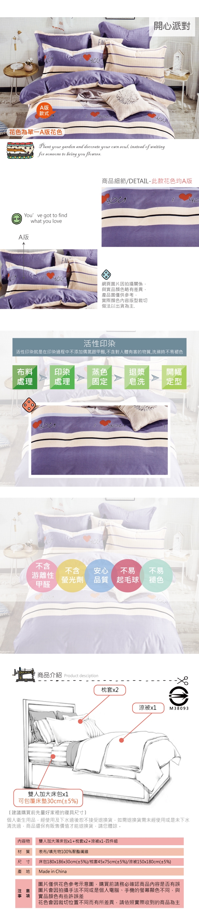BEDDING-活性印染6尺雙人加大薄床包涼被組-開心派對 評價