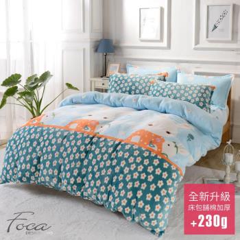 【FOCA】雙人-升級舖棉床包-極緻保暖法萊絨四件式兩用毯被套厚包組(甜心兔寶寶)