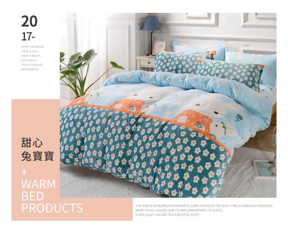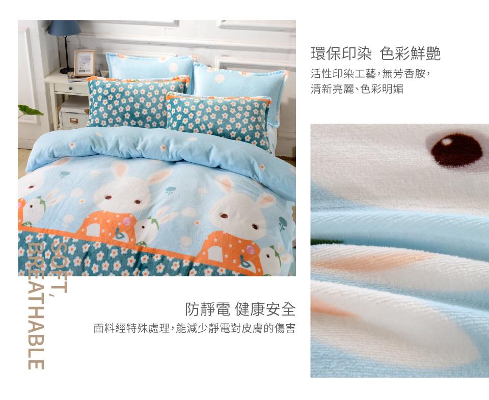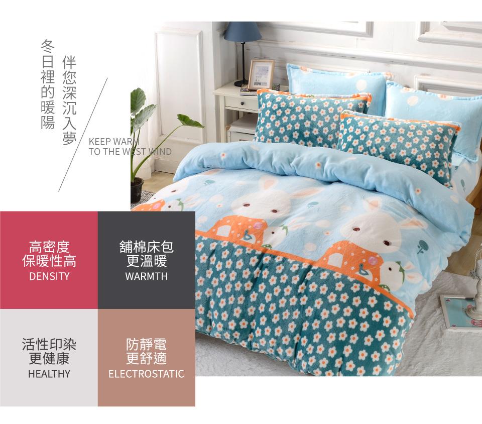 2019日用品推薦 【FOCA】雙人-升級舖棉床包-極緻保暖法萊絨四件式兩用毯被套厚包組(甜心兔寶寶)
